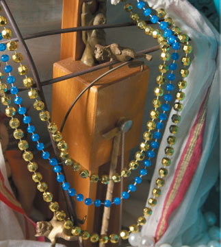 Me in Sri Lanka, Easel, fabric, paper, hat, beads, toys and dolls, 60"h X40"d X 80"w