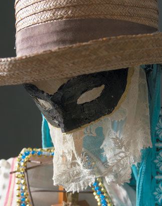 Me in Sri Lanka, Easel, fabric, paper, hat, beads, toys and dolls