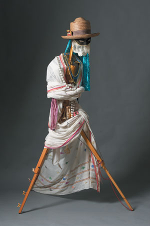 Me in Sri Lanka, Easel, fabric, paper, hat, beads, toys and dolls,